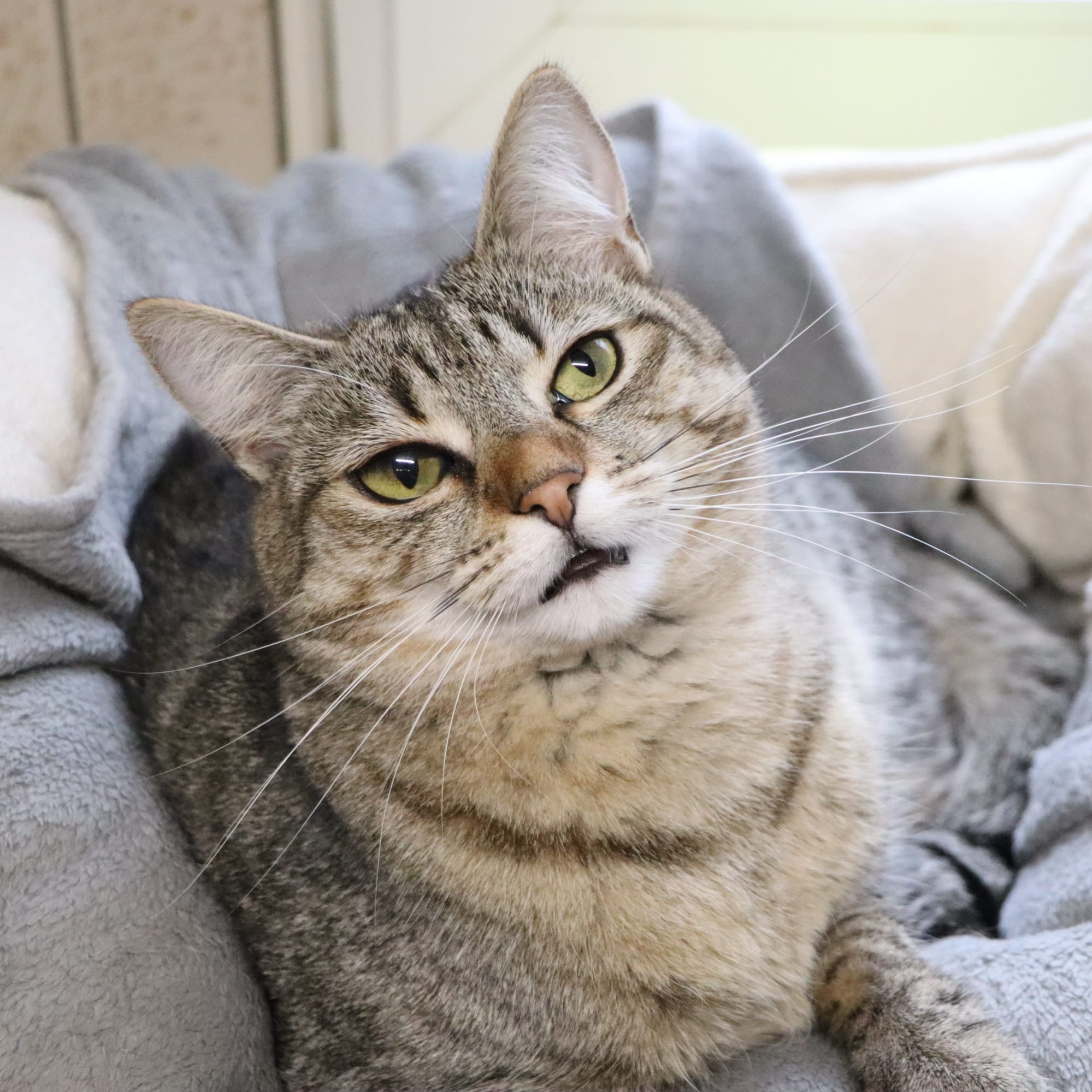 Durch mein kleines Handicap ist Freigang, so wie früher, für mich nicht möglich, aber das ist nicht so schlimm, denn auch im Tierheim bin ich lieber im Innenraum – besonders bei schlechtem Wetter. In meinem neuen Zuhause würde ich mich über einen abgesicherten Balkon freuen, damit ich mir ein frischen Lüftchen um die Nase wehen lassen kann.