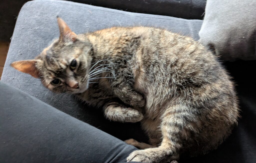 Stinker ist eine verschmuste ältere Katze die es liebt gestreichelt zu werden aber auch ihren Freiraum genießt. Stinkers hat alle paar Monate etwas Probleme beim Haarballen spucken und braucht daher immer das gleiche anti hairball Trockenfutter, Nassfutter Verträgt sie alles. In dieser Zeit mag sie meist ein, zwei Tage nix essen, weil ihr vom erbrechen der Hals weh tut. Das ist mit dem Tierarzt abgesprochen und als unbedenklich eingeordnet worden.