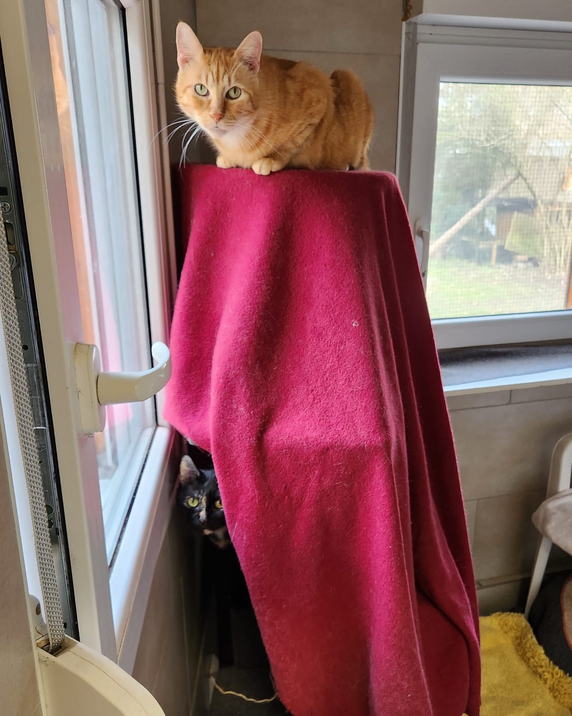 Wir sind zusammen in einem Garten unterwegs gewesen und wurden dort auch gefüttert. Da wir keine Besitzer hatten wurden wir im Februar 2025 ins Tierheim Nied gebracht. Um ehrlich zu sein war das auch gut so, denn Carla war trächtig. Hier konnte sie ihre Kinder in Sicherheit zur Welt bringen und diese sind auch bereits alle glücklich vermittelt 🙂