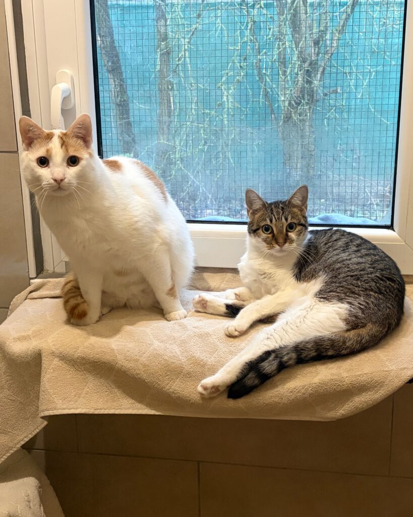 Wir zwei kamen mit weiteren Katzen durch eine Fangaktion ins Tierheim Nied. Im Vergleich zu den anderen eingefangenen Katzen finden wir euch Menschen nicht komplett doof 😹 und bekommen jetzt die Chance hier zu bleiben und ein eigenes Zuhause zu finden 😀