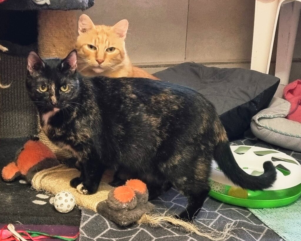 Hallo ihr da draußen, wir sind Carla (Schildpatt, ca. 3 Jahre alt) und Carlo (rot, ca. 3 Jahre alt) und suchen gemeinsam ein zu Hause mit gesichertem Freigang.